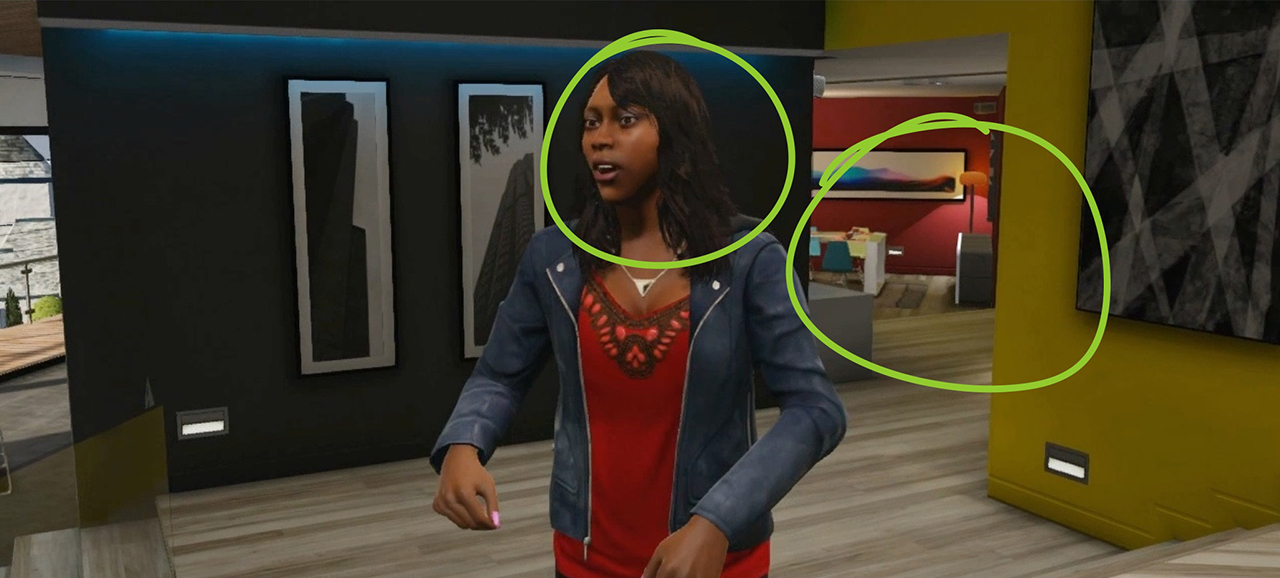 The short amount that we see of this situation isn't enough to tell whether this woman is Franklin's wife, girlfriend, sister, cousin or just a friend of his, but she seems to care for him. In the background we get another look at the apartment, whether this is Franklin's place or not is unknown.