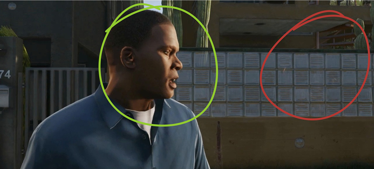 As Franklin speeds off in a 9F, that he has presumably repossessed from the man running from the house waving his hands, another indication of new dynamic animations reacting to the world around them. Also visible is a security camera, perhaps committing a crime in view of these cameras will gain you a wanted star.
