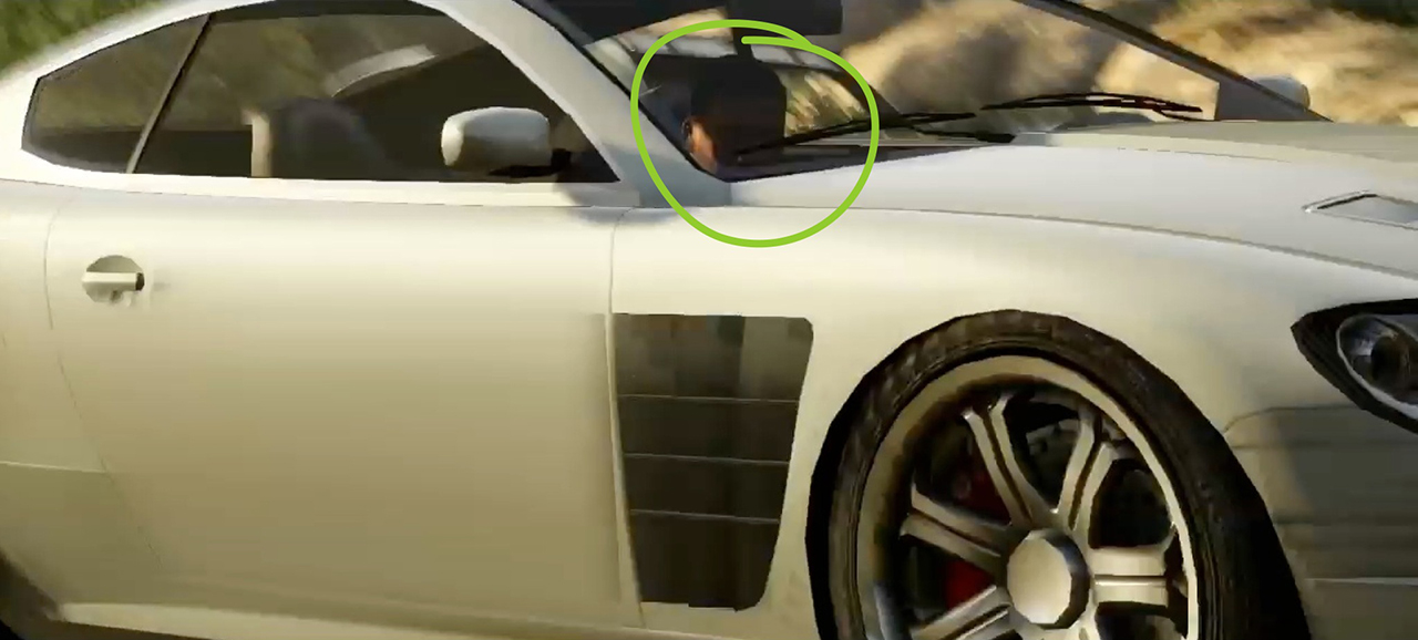 As the pursuing F620 speeds past the camera we catch a glimpse of Franklin at the wheel,