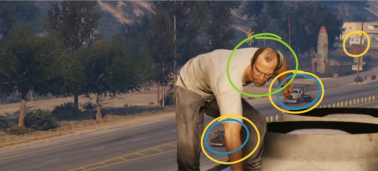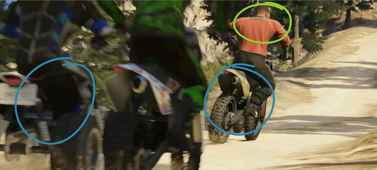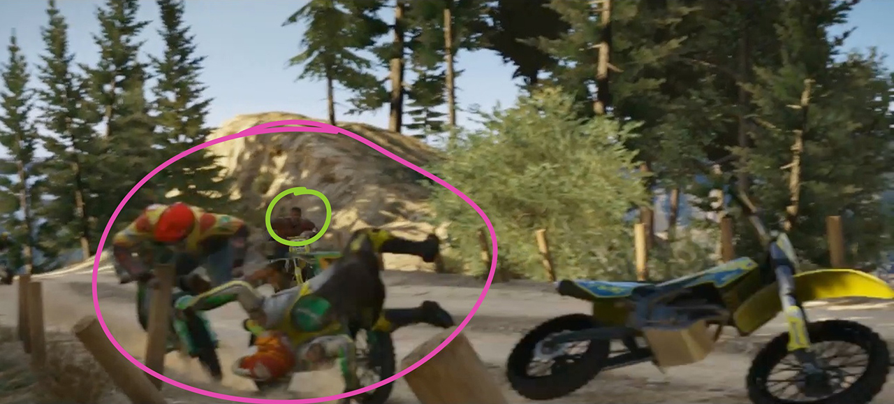 When suddenly 3 of the riders are involved in a crash in front of Franklin, and we can see the likely upgraded Euphoria physics engine at work beautifully.